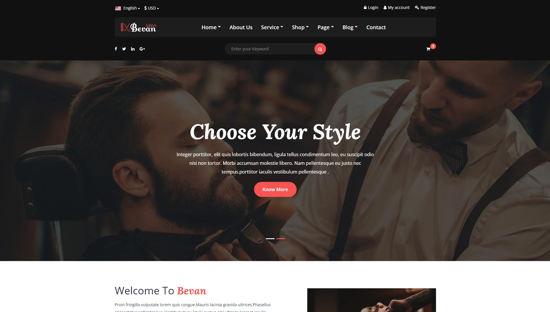 Bevan – Barber Salon Bootstrap 4